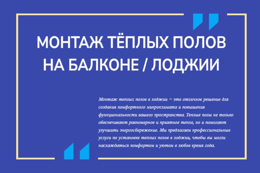 - Комфортное тепло: Теплые полы создают равномерное тепло по всей поверхности, что делает пространство на лоджии комфортным и уютным. Вы сможете наслаждаться теплыми полами даже в самые холодные дни.